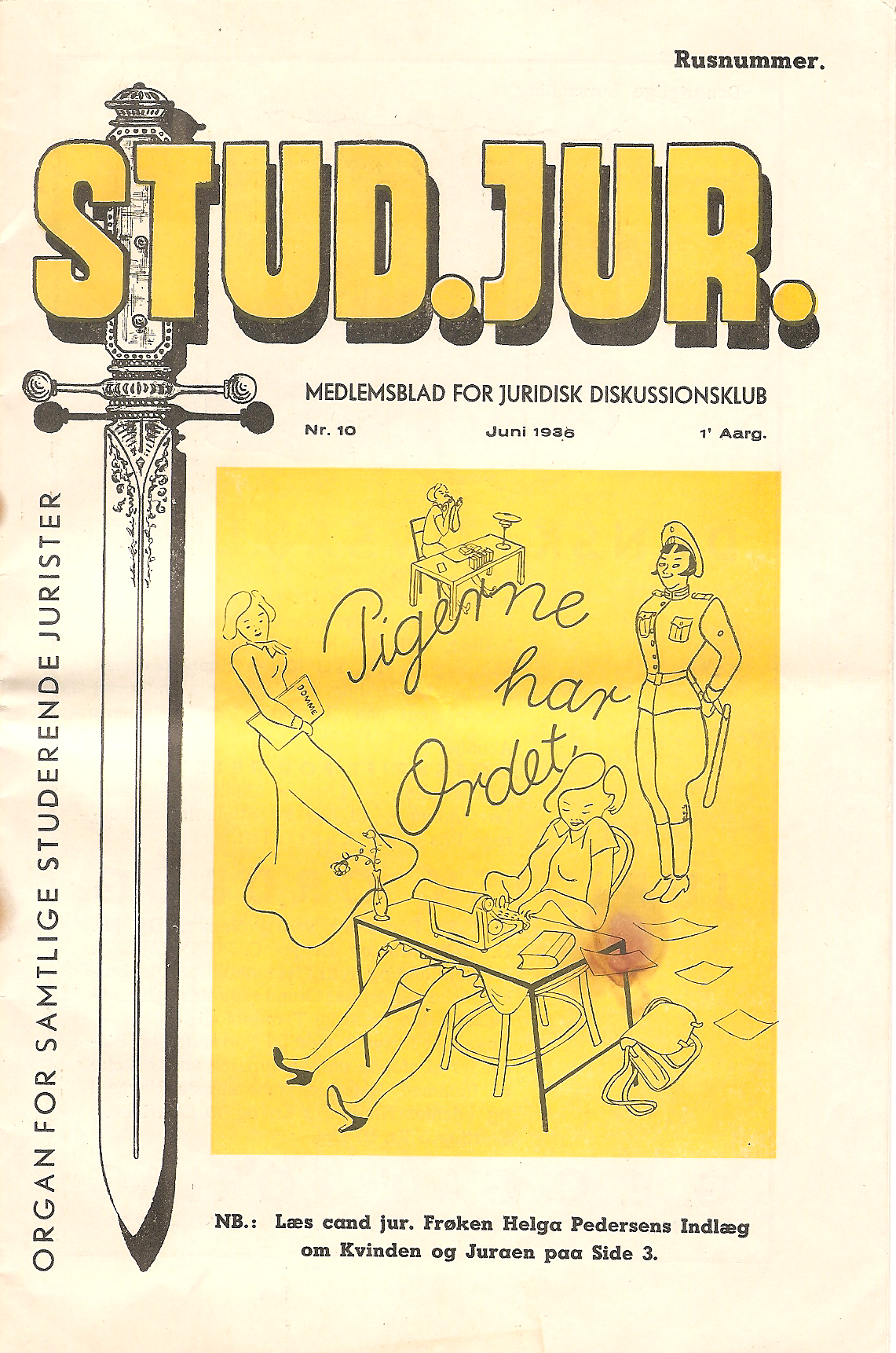 For nylig ryddede jeg op i en kasse med gamle papirer, jeg havde arvet. I kassen lå blandt andet et eksemplar af bladet Stud. jur. fra 1936. Det gamle gulnede blad indeholdt forskellige nyttige oplysninger for datidens studerende ved det juridiske fakultet på Københavns Universitet samt en række artikler, der gav et morsomt indblik i, hvordan verden så ud for en jurastuderende dengang. I anledning af, at det i dag er den internationale kvindedag, bringer jeg her et uddrag fra en af artiklerne i bladet, nemlig artiklen ”Kvinden og Juraen” skrevet af Helga Pedersen, der dengang var fuldmægtig i Justitsministeriet, og som senere blev ikke bare dommer, men også justitsminister og medlem af Folketinget.